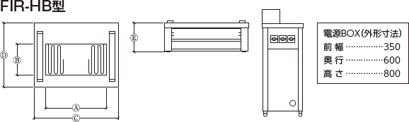 | FIR-12L | 3相 200V 12KW | 3段切替 | 960 | 180 | 1120 | 450 | 350 |